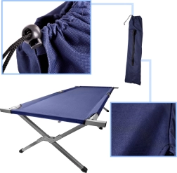 Uživajte v mirnem spancu v naravi. Robustna jeklena konstrukcija ohranja stabilnost, široka ležalna površina iz trpežnega poliestera 600D pa zagotavlja udobje tudi pri daljšem počitku. Postelja se razpre v nekaj sekundah brez orodja, zahvaljujoč torbi s trakom pa jo enostavno vzamete v avto, kamper ali na čoln.