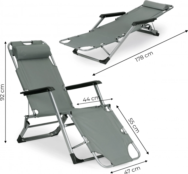 Ležalnik lahko zložite v stol, zahvaljujoč pametni zasnovi pa je v trenutku ponovno pripravljen kot udoben ležalnik, idealen za sprostitev na prostem.