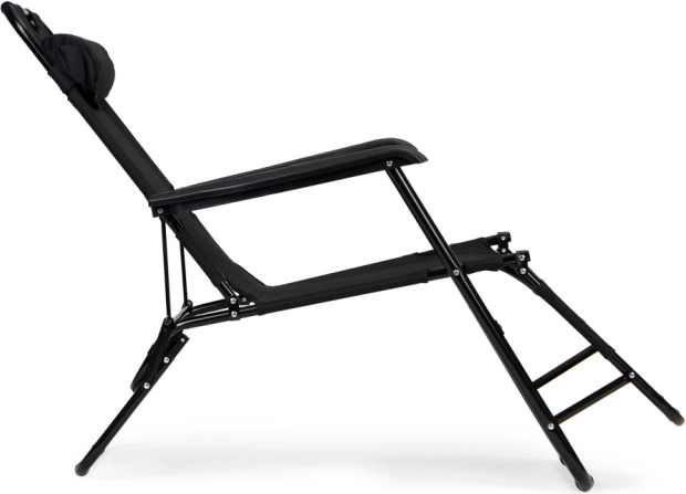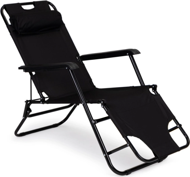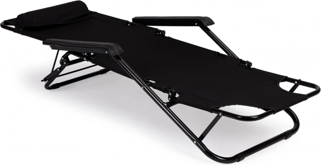 Vrtni ležalnik z naslonom za glavo, zložljiva konstrukcija, črn, MultiGarden