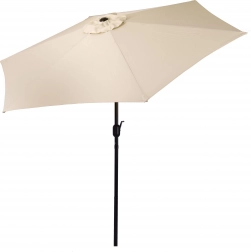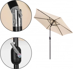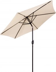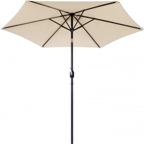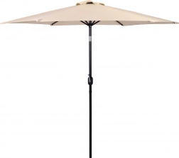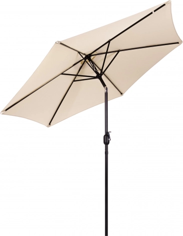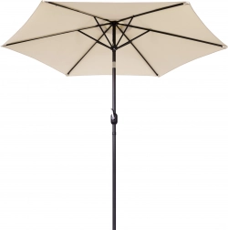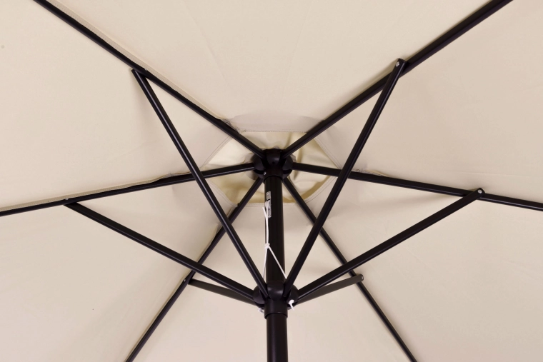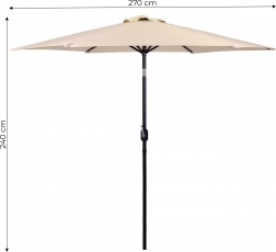 Kakovostna prevleka iz poliestera 160 g/m² je odporna na sonce in rahel dež, trden jekleni okvir (ø 38 mm) s šestimi rebri ohranja obliko in daje celoti stabilnost. Minimalističen dizajn in bež izvedba sta primerna za teraso, vrt, balkon in kampiranje.