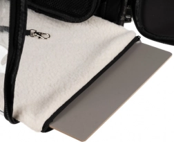 Odstranljiva mehka podloga z ojačanim dnom in notranja varnostna karabina zagotavljata udobje in zaščito živali med prevozom.