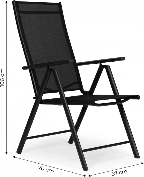 Zložljivi stoli s sedmimi položaji naslonjala vam omogočajo udobno sprostitev na vrtu, balkonu ali terasi. Jekleni okvir zagotavlja stabilnost in dolgotrajno uporabo, zahvaljujoč uporabljenim kvalitetnim materialom ne zahtevajo vzdrževanja.