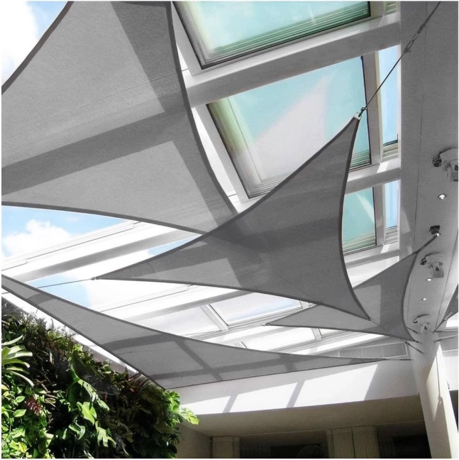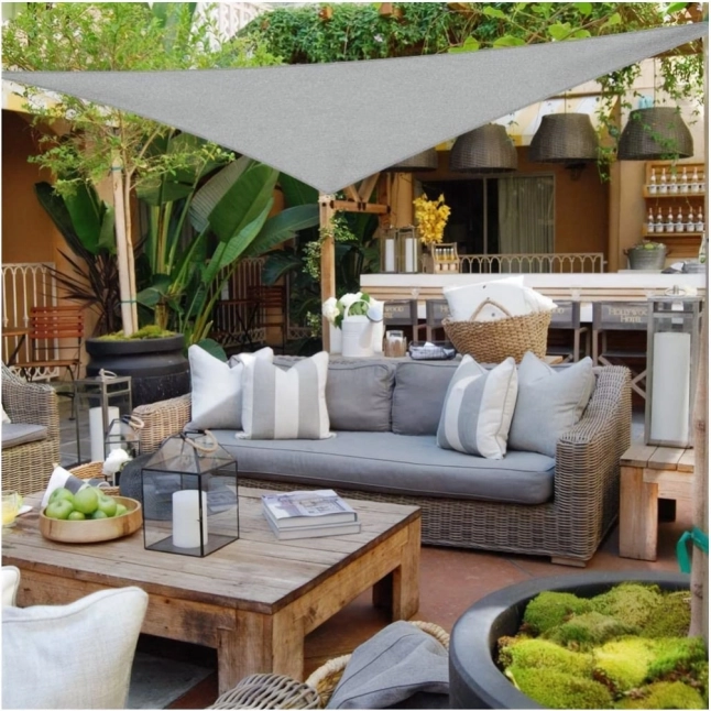 Trikotna ponjava 3 × 3 × 3 m ustvari prijetno senco za sedenje, jedilni kotiček in otroško igro ter učinkovito ščiti pred škodljivim UV-sevanjem.