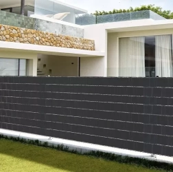 Povečajte zasebnost in zmanjšajte pogled skozi panelno ograjo. Antracitni trak ograji doda čist, enoten in sodoben videz, ki se lepo zlije z okolico.