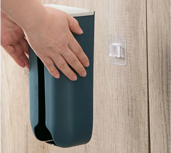 Namestitev je hitra in čista – priloženi samolepilni nosilec pritrdi organizator na ploščice, les in lakirane površine brez potrebe po orodju. Odstranljiv ročaj omogoča, da koš obesite tudi na vratca omarice in ga kadarkoli prestavite.