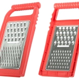 V kompletu so tri vrste rezil: rezalno, za grobo ribanje in za fino ribanje. Zahvaljujoč kljukicam za naslon na skledo ali lonec imate pri delu stabilnost in proste roke. Ribežen je idealen za zelenjavo, sadje in sir, po uporabi pa ga zlahka sperete.