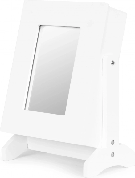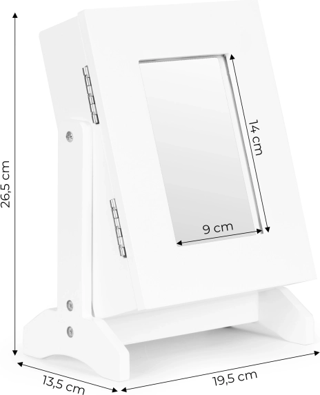 Odkrijte praktično škatlico za nakit, ki združuje dizajn in funkcionalnost. Kompaktne mere omogočajo postavitev na komodo v spalnici, v kopalnici ali garderobi, medtem ko se mat bela izvedba zlahka vklopi v sodoben interier. Zunanje ogledalo služi pri preizkušanju nakita in hitrem ličenju.