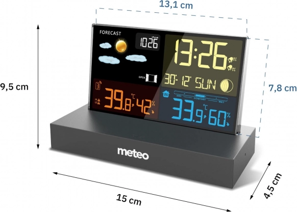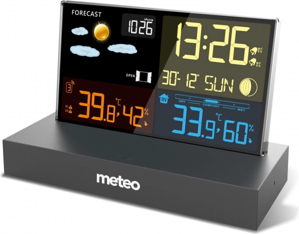 Vremenska postaja prikazuje temperaturo, vlažnost, tlak in napoved s pomočjo izrazitih ikon, tako da z enim pogledom veste, kakšno vreme bo.