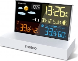 Ohranite pregled nad vremenom in klimo doma. Postaja METEO SP110B v realnem času prikazuje notranjo in zunanjo temperaturo, relativno vlažnost, atmosferski tlak ter prikaže napoved za 12–24 ur s pomočjo jasnih piktogramov. Zahvaljujoč DCF se čas in datum nastavljata samodejno, budilka s funkcijo snooze pa vas zanesljivo prebudi.