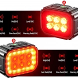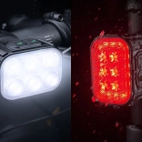 Komplet podpira USB polnjenje z katere koli naprave z USB priključkom, kar je zelo praktično. Sprednja luč ima šest načinov svetenja, enako tudi zadnja luč, kar omogoča prilagoditev po potrebi.