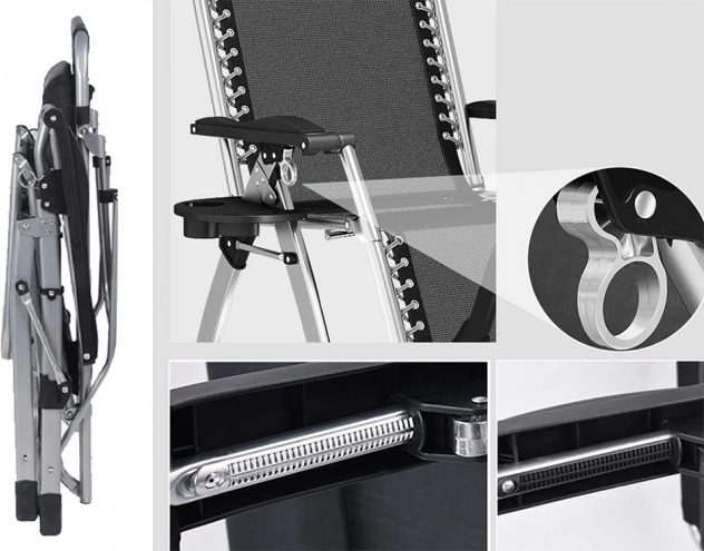 Ležalnik je opremljen s trdnim jeklenim ogrodjem in zračnim sediščem, ki zagotavlja udobje tudi v vročih dneh. Največja nosilnost je 140 kg.
