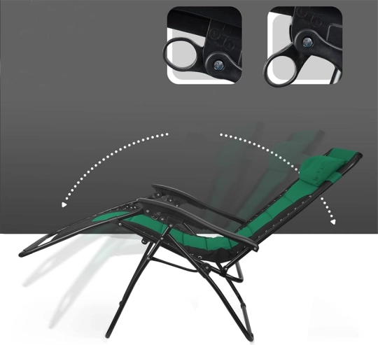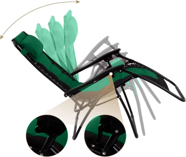 Gravitacijski sistem omogoča spreminjanje kota ležalnika, zaklepni mehanizem pa zagotavlja varno uporabo. Odlično za sončenje ali dremež.