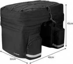 Ta torba je opremljena s tremi glavnimi predelki s skupno kapaciteto 60 litrov, kar zadošča za prevoz ne le prigrizkov in oblačil, temveč tudi vrednejših predmetov, kot so prenosnik ali dokumenti formata A4. Popolna je za mestno vožnjo in daljše kolesarske izlete.