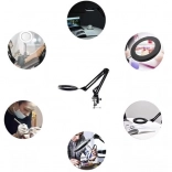 Praktična namizna svetilka z lupo IZOXIS ponuja svetlo krožno LED osvetlitev, stabilno pritrditev na mizo in stekleno optično lečo za natančno delo brez popačenja. Zahvaljujoč 10 stopnjam svetilnosti in 3 barvnim temperaturam svetlobe (topla, nevtralna, hladna) si osvetlitev zlahka prilagodite za kozmetiko, modelarstvo, branje in fino ročno delo. Napajanje prek USB in upravljalnik na kablu zagotavljata maksimalno udobje.