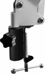 Čvrsta kovinska konstrukcija z nastavljivimi zglobi in vzmetmi drži položaj, medtem ko vpenjalni clamp varno pritrdi svetilko na mizno ploščo do debeline 5 cm. Steklena leča je odporna proti praskam in nudi čist, jasen prikaz.