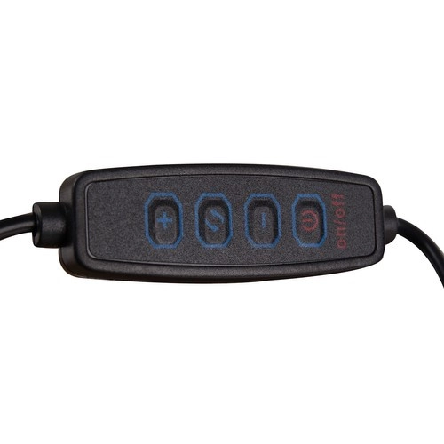 Povežite z računalnikom, polnilnikom ali powerbankom. Upravljalnik omogoča vklop/izklop, spremembo temperature svetlobe in uravnavanje svetlosti (+/−).
