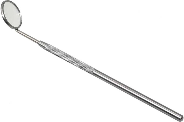 Profesionalno zobno ogledalo. Nepogrešljiva oprema vsakega zobozdravnika. Izdelano iz trpežnega nerjavečega jekla. Dolg ročaj z grobim oprijemom omogoča enostavno manevriranje pri delu. Zamenljivo poveččevalno ogledalce omogoča natančen pregled stanja ust in zob.