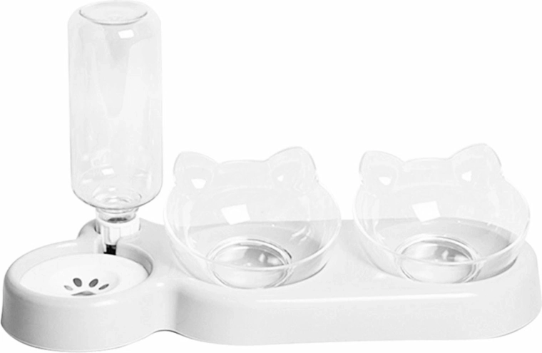 Avtomatski dozirnik vode in podstavek za hrano za mačke. Naklon sklede za 15 stopinj našemu ljubljenčku olajša hranjenje. Steklenica za vodo s prostornino 0,5 l zagotavlja, da ima vaš ljubljenček vedno na voljo svežo vodo. Zahvaljujoč posebnemu ventilu naprava samodejno dopolnjuje vodo iz rezervoarja v skledo. Kompaktna zasnova je odlična za majhne kuhinje in hodnike.
