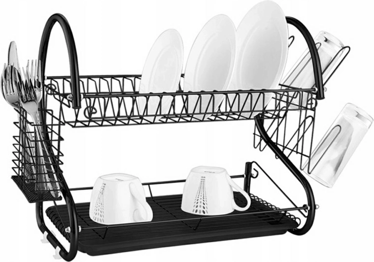 Praktičen dvonadstropni odcejevalnik za posodo iz kromiranih žic in cevi, ki se odlično obnese v vsaki kuhinji. Na zgornji ravni sprejme do 15 krožnikov, na spodnji pa je prostor za kozarce in skodelice. Je izjemno prostoren, poleg tega pa je opremljen z več snemljivimi elementi, ki povečajo uporabnost.