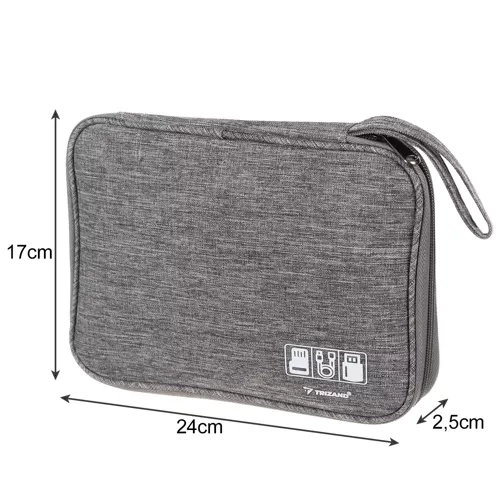 Brez več zavozlanih kablov in kaotičnega dna nahrbtnika. Ta priročen organizator združuje lahek in trpežen poliester s praktično razporeditvijo, zato boste USB-kable, polnilnike, slušalke in redukcije shranili varno in pregledno. Kompaktne mere 24 × 17 × 2,5 cm se odlično prilegajo torbi ali ročni prtljagi.