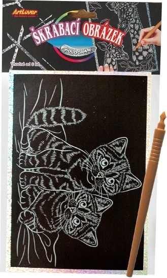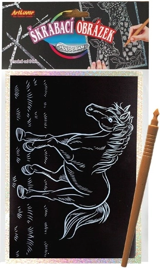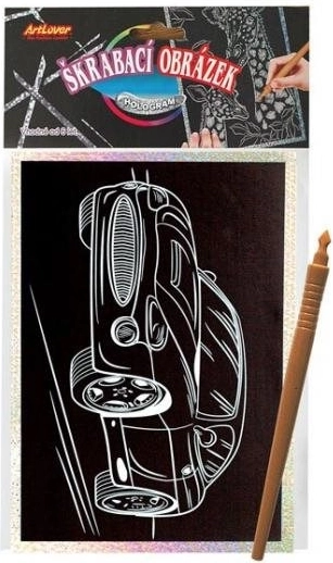 Ta ustvarjalni komplet je idealen za otroke, ki imajo radi ustvarjanje. Dovolj je, da odstranite zaščitno folijo in s priloženim peresom postopoma izpraskate natisnjene linije motiva avtomobila. Holografska plast doda končnemu motivu osupljiv bleščeč učinek, ki izstopa v vsaki otroški sobi.