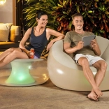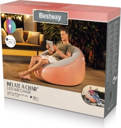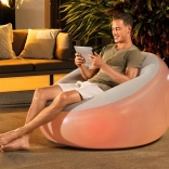 Napihljiv naslanjač BESTWAY z merami 102 × 97 × 71 cm je praktična rešitev za dom, študentsko sobo in teraso. Z vgrajeno LED osvetlitvijo (7 barv) ustvari prijetno atmosfero pri gledanju filmov, igričarskih večerih ali počitku po delu. Po izpustu zraka zavzame minimalno prostora in je enostaven za prenašanje.