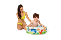 Napenljiv bazenček Intex z ljubkimi dinozavri je idealen za prve vodne radosti otrok od 1 do 3 let. Zaradi premera 61 cm in višine 22 cm se prilega skoraj povsod ter nudi varno in plitvo območje za igro in osvežitev v vročih dneh.