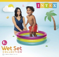 Napihljiv otroški bazen INTEX Rainbow je pisan in praktičen pomočnik za poletne dni. Zaradi treh prozornih obročev je stabilen in udoben, medtem ko se kompaktne dimenzije 86 × 25 cm prilegajo večini vrtov, teras in balkonov. Kapaciteta 68 litrov pri priporočeni višini gladine 17 cm zagotavlja varno in plitvo vodno površino za malčke.