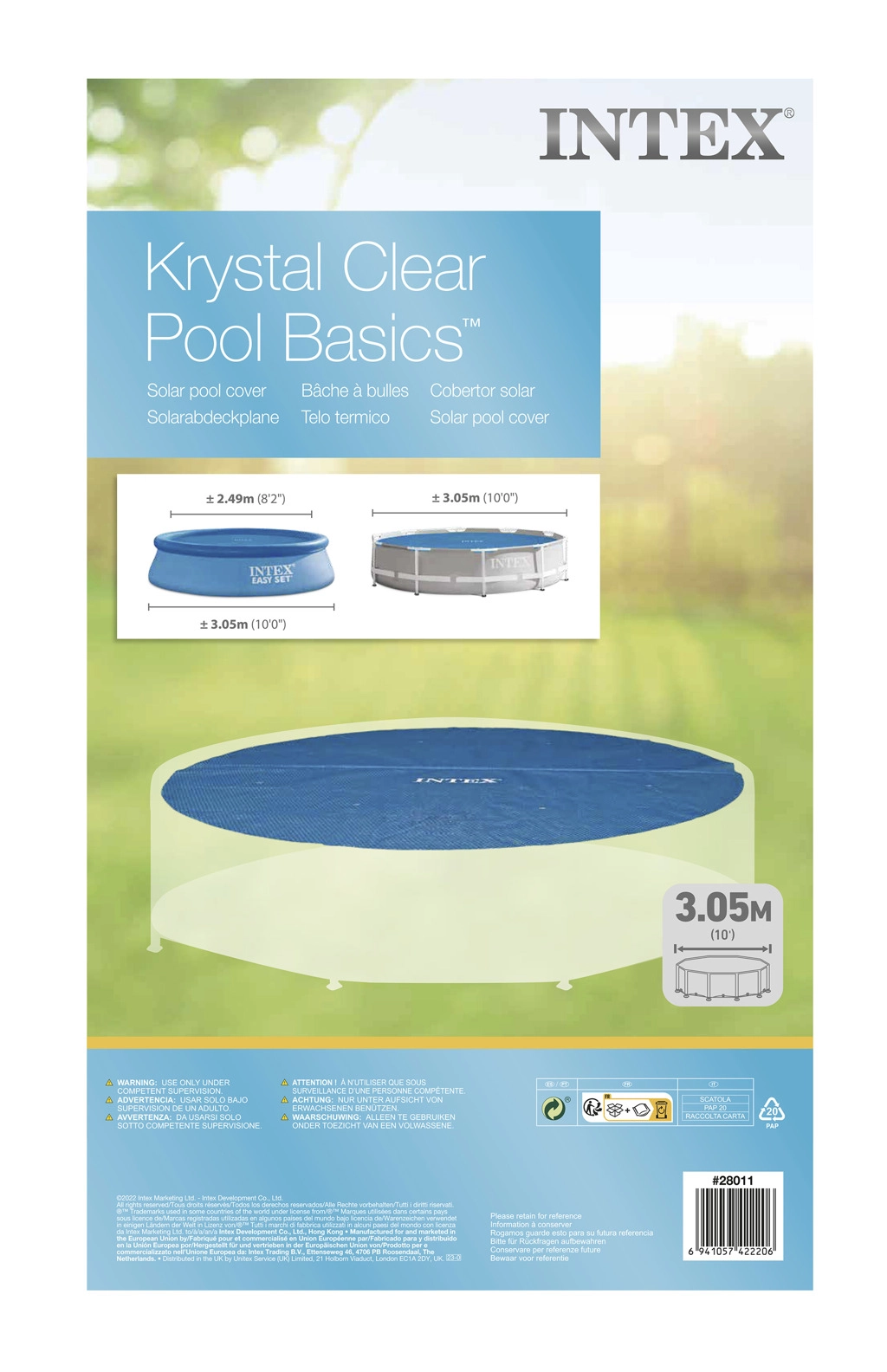 Praktična sončna ponjava INTEX za okrogle bazene s premerom 305 cm učinkovito segreva in ohranja temperaturo vode, hkrati zmanjšuje toplotne izgube ponoči ter ščiti vodno gladino pred listjem in nečistočami. Zahvaljujoč mehurčkasti strukturi prepušča sončne žarke in izboljšuje izolacijo vode.