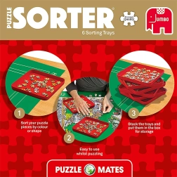 Ohranite red pri sestavljanju sestavljank in pospešite iskanje pravih delcev. Šest prostorskih skled omogoča razvrščanje delcev po barvi ali obliki, zato se boste k sliki vedno vračali z jasnim pregledom. Trpežen plast in priročen format 20 × 20 cm zagotavljata, da se delci lepo prilegajo in se ne mešajo.