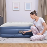Dvoposteljna napihljiva blazina BESTWAY ponuja udobno spanje doma ali v šotoru. Ima mehak flokiran vrhnji sloj, vzdržljivo konstrukcijo Tritech in vgrajeno električno črpalko 220–240 V, ki blazino napihne v 4 minutah. Zahvaljujoč največji nosilnosti 300 kg, hitremu izpustnemu ventilu in integriranemu vzglavniku zagotavlja udobno in praktično uporabo.
