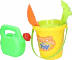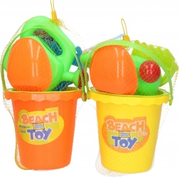 V kompletu najdete vse, kar je potrebno za gradnjo gradov, peko potičk in zalivanje: vedro, sito, zalivalko, grabljice in lopatko. Na voljo sta dve veseli barvi – rumena in oranžna, ki otrokom olajšata prepoznavanje njihovega kompleta.