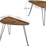 Izboljšajte svojo dnevno sobo z elegantnim kompletom dveh klubskih mizic v loft slogu. Rustikalno tonirane plošče v rjavem dekorju in kontrastne črne jeklene noge ustvarijo prijetno atmosfero in poudarijo značaj vašega interierja.