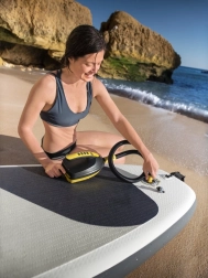 Odpravite se k vodi brez odlašanja. Električna črpalka BESTWAY HYDRO-FORCE se napaja iz 12V avtomobilske vtičnice in v nekaj minutah napihne SUP, čoln ter drugo vodno opremo. Pregleden LCD-prikazovalnik z izbiro enot PSI / BAR ter nastavljanjem po 0,5 PSI zagotavlja natančno nastavitev ciljnega tlaka.