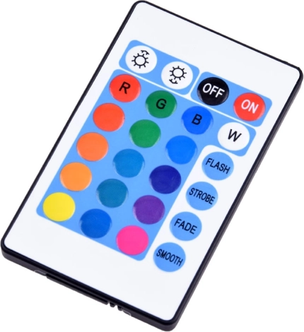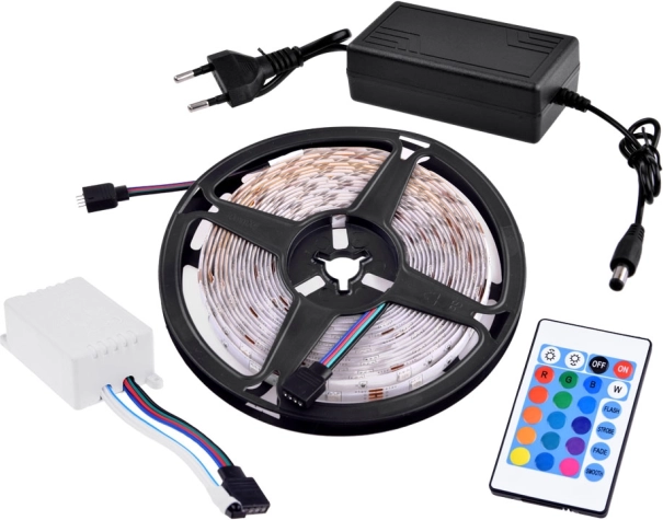 Del paketa je daljinski upravljalnik s 24 gumbi, ki olajša spreminjanje barv in načinov osvetlitve. To vam ponuja neskončne možnosti, da osvetlitev prilagodite svojemu trenutnemu razpoloženju ali stilu.