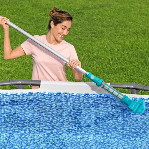 Brezžični sesalnik za bazen Bestway AquaSurge je praktična rešitev za hitro in učinkovito odstranjevanje peska, listja in drobnih nečistoč. Zahvaljujoč kompatibilnosti z bazeni do premera 610 cm je idealen za večino vrtnih bazenov. Lahka tridelna teleskopska palica zagotavlja udoben doseg in enostavno upravljanje.