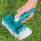 Zaradi čvrste konstrukcije in odpornih ščetin zlahka opravi z algami, oblogami in običajnimi nečistočami. S pomočjo zaskočne pritrditve jo zlahka povežete s teleskopskimi drogovi z notranjim premerom 30 mm, zato očistite tudi globlje dele bazena brez potapljanja.
