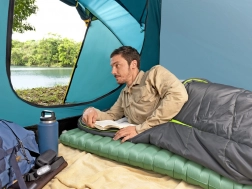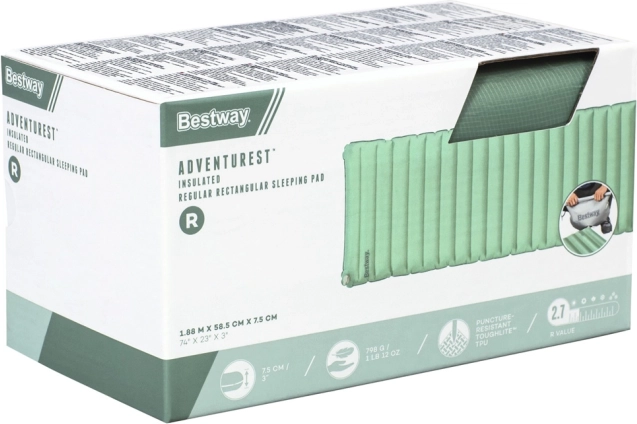 Napihljiva blazina Bestway AdventuRest združuje udobje in funkcionalnost, kar je odlična izbira za prenočitve v naravi. Izdelana je iz odpornega materiala ToughLite z ripstop tkanino, ki ščiti pred predrtji. Del paketa je tudi izolacijski sloj ThermoLite, ki zagotavlja lahkotnost in toplino.