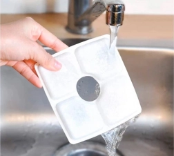Predfiltrirna gobica, ionskoizmenjevalna smola in aktivno oglje odpravljajo vonjave in nečistoče. Zamenljivi filtri ohranjajo vodo dlje časa svežo.