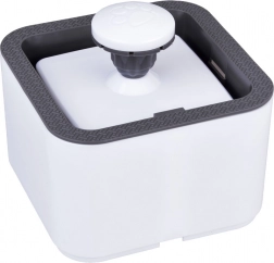 Ta sodoben vodnjak za domače ljubljenčke je zasnovan za varno in udobno vsakodnevno uporabo. Zahvaljujoč veliki prostornini 2,5 l zagotavlja dovolj vode za več dni, medtem ko izjemno tiha črpalka ne moti ne podnevi ne ponoči. Zaobljene oblike in preprosta zasnova omogočajo enostavno čiščenje in hitro namestitev.