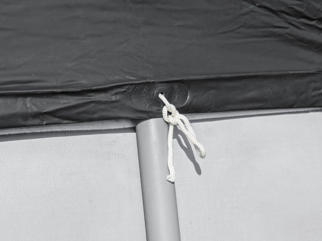 Hitro se pritrdi z vrvmi, luknje pa učinkovito odvajajo deževnico.