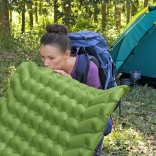 Nagnjeni zračni žepi stabilizirajo telo, zmanjšujejo drsenje in zagotavljajo udobje skozi vso noč. Debelina 6,5 cm ublaži neravnine terena.