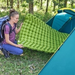 Napihljiva blazina BESTWAY WanderLite Large je zanesljiv spremljevalec za kampiranje, pohodništvo in festivale. Zahvaljujoč velikodušnim meram 198 × 71 × 6,5 cm se odlično poda tudi k večji spalni vreči ter nudi udobno izolacijo in oporo na neenakomerni podlagi. Kombinacija materiala ToughLite in ripstop najlona 70D prinaša visoko odpornost proti drgnjenju in trganju ob nizki teži.