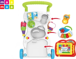 Odkrijte praktično 2v1 – hoduljo za prve korake in hkrati multifunkcionalni igralni center, ki raste skupaj z vašim otrokom. Velika osnova zagotavlja odlično stabilnost, zadnja kolesca z nedrsečo podlogo pomagajo varno zavirati, interaktivna plošča pa ponuja veliko pametne zabave.