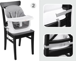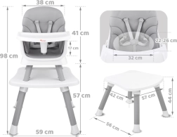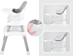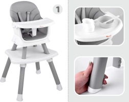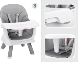 Ta multifunkcijski stolček 6-v-1 je idealen za prve kašice in vsakodnevno obedovanje. Zaradi premišljene zasnove ga zlahka prilagodite rasti otroka in različnim situacijam – od hranjenja za mizo do igre in ustvarjanja. Odstranljiv pladenj lahko hitro operete pod tekočo vodo ali v pomivalnem stroju, prevleka je zračna in enostavna za čiščenje.