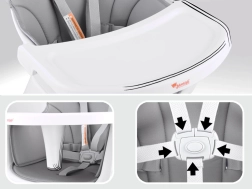 Varnost zagotavljajo 5-točkovni pasovi in prečka proti zdrsu. Nedrseči nastavki na nogicah stolček trdno držijo na mestu. Sestavljanje in preklapljanje med načini je hitro in intuitivno, zato se lahko osredotočite na bistveno – udobje in veselje vašega otroka.