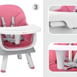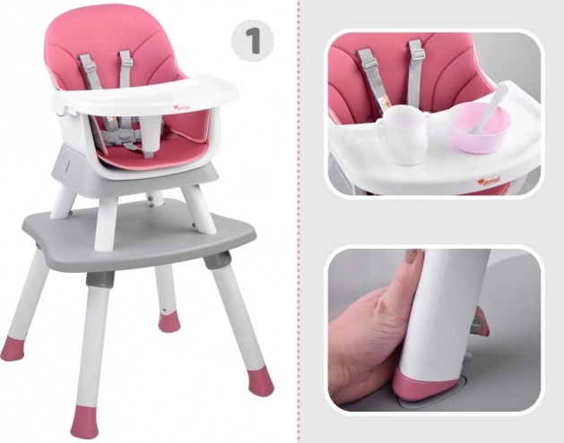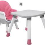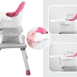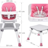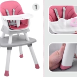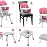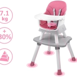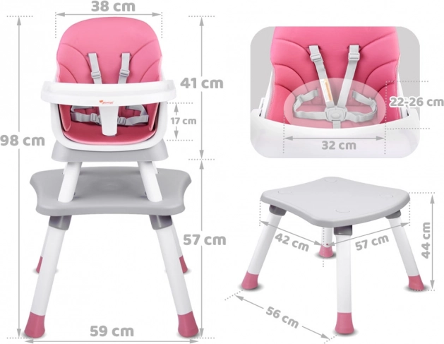 - 6 funkcij v 1: visoki stolček s pladnjem, nastavek na jedilni stol, nizki stolček s pladnjem, stolček + mizica, mizica z osnovo za kocke, nizek tabure
