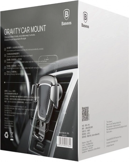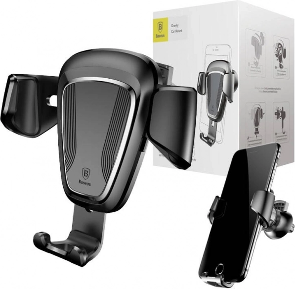 Uživajte v varni in pregledni uporabi telefona med vožnjo. Gravitacijski mehanizem nosilca BASEUS se ob vstavitvi telefona samodejno zapre in ga trdno fiksira, mehke obloge pa ščitijo napravo pred praskami. Kompaktna zasnova v elegantni črni barvi se enostavno namesti na večino prezračevalnih rešetk.