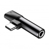 Praktičen adapter USB‑C na 3,5‑mm mini jack znamke BASEUS rešuje odsotnost priključka za slušalke pri sodobnih telefonih. Omogoča sočasno priklop 3,5‑mm slušalk in USB‑C kabla za polnjenje, zato ni treba sklepati kompromisov pri poslušanju in napajanju.