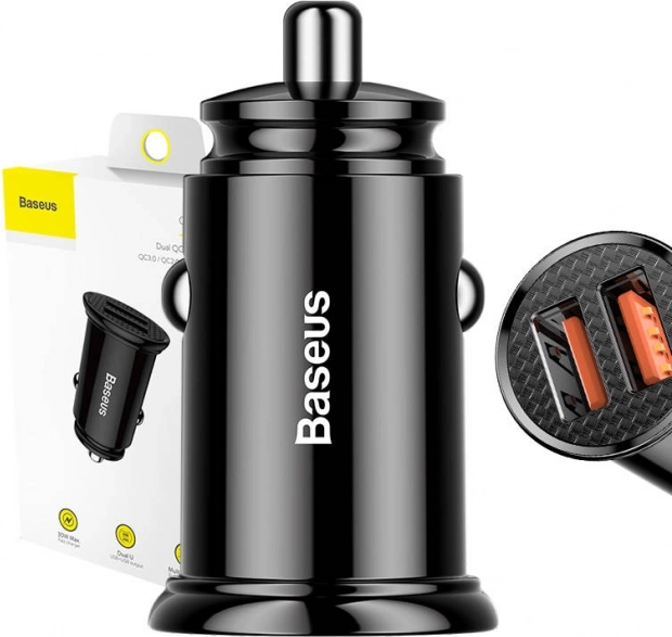 Baseus avtopolnilec 2x USB QC3.0 30W črn